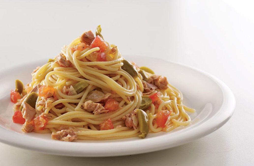 Por otro lado, en abundante agua con sal hervir los spaguettis al dente y cuando estén cocidos, escurrirlos, disponerlos en una fuente, verter sobre ellos la salsa y al final espolvorear todo con las aceitunas descarozadas y picadas